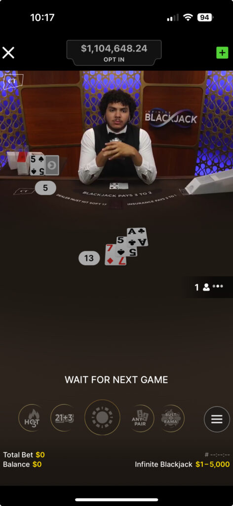 It’s not the same as being in the actual casino (obviously). But I played a few hands of blackjack and the dealer pictured below was very interactive and personable – in some cases more so than the dealers at Mohegan Sun. I will add that this experience was much better than the live dealer experience I had at a competitor not too long ago.